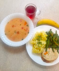 Zupa kapuśniak ze słodkiej kapusty z zacierka i pomidorami