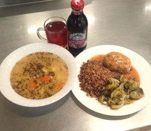 Zupa grochowa ,zraz mielony ,sos pomidorowy