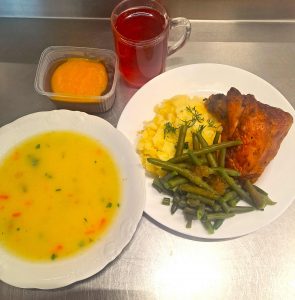 kurczak pieczony, ziemniaki gotowane z koperkiem